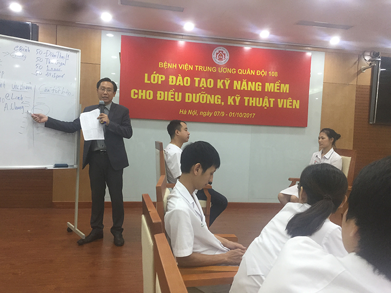 Doanh Nghiệp, Hoạt động đào tạo, Sự kiện, Thư việnCHƯƠNG TRÌNH ĐÀO TẠO CHO BỆNH VIỆN TRUNG ƯƠNG QUÂN ĐỘI 108 LẦN 3 Posted on September 11, 2017November 16, 2020 by Đúng Nghĩa Cuộc Sống 11 Sep Bệnh Viện Trung Ương Quân Đội 108 tiếp tục tổ chức lớp thứ 3 Chương trinh Đào Tạo Nâng Cao Tinh Thần Và Trách Nhiệm Trong Công Việc cho toàn thể Đội ngũ Điều Dưỡng, Kỹ Thuật Viên của Bênh Viện Một số hình ảnh từ Chương trình đào tạo : Post Views: 1,732 Đúng Nghĩa Cuộc Sống CHƯƠNG TRÌNH ĐÀO TẠO CHO BỆNH VIỆN TRUNG ƯƠNG QUÂN ĐỘI 108 LẦN 2 Đào tạo public: “Kỹ Năng Bán Hàng và Chăm Sóc Khách Hàng Hiệu Quả” tại Hồ Chí Minh